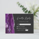 Det moderna djurutrymmeskortet i elegantens lämnat kant har ett lila vattenfärgsagat i gräns som trimmas med faux silver glitter. Rubriken "Kinely Reply" visas i skript, med anpassade text nedan i silver grått sans serif-teckensnitt på en svart bakgrund. Den omvända sidan har en matchande lila- och silver-agate-design.