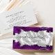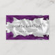 Det moderna affärskortet i elegant har en bild av det vita silke, som är inramat på ovansidan och grund med lila vattenfärgsagat gräns som trimmas med glatt silver faux glitter. Anpassa den med ditt namn i ett skript för osvart handskrift-stil och din affärsinformation i sans serif-teckensnitt. Baksidan är en koordinerande ton av fast blek grått. Perfekt för hårstilister, makeup artists och estetikers.