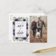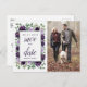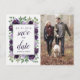 Lila Silver Blommig Grön Bröllop Spara Datum Vykort - har akvarellblommor i nyanser av lila (plommon, aubergine, lavendel, etc.) med grönska som består av eukalyptus och andra fina kvistar.