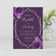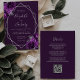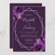 Den här elegantens moderna bröllopsinbjudan innehåller en silver-geometrisk ram som dekoreras med plum- och silver-blommigtar på en djup lila bakgrund. I anpassadet kombineras silver grått med fysisk handskrift, tryckplåt och kursivt typsnitt. På baksidan finns utrymme för information om bröllop, tillsammans med en QR-kodgäst som kan söka på webbplatsen och OSAN, vilket sparar kostnaderna för utskrift och utskick av separat OSA kort.