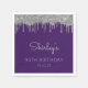Dessa chic, 90:e feminin (eller vilket år som helst) födelsedagsfest pappra blöjor har en glatt bakgrund av silver faux glitter drip gräns och lila. Anpassa dem med hedersgästen namn i handskript för silver grått, med hennes födelseår och datum nedan i sans serif-typsnitt.