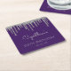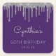 Lila Silver Glitter Drip 60:e Födelsedagsfesten Underlägg Papper Kvadrat