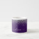 Silver och lila glittrande glitter Borstat Metall Monogramnamn Espresso Kaffe Kopp eller Mugg. Detta gör den perfekta söta 16-årspresenten, bröllop, brud shower, årsdag, baby shower eller möhippa present till någon som älskar glamour lyx och chic stilar.