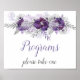 Lila Silver Grå Blommig Bröllopsprogram Skylt