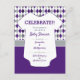 Oversifierad elegant argyle mönster i skolans färg av lila och silver grått satte bakgrunden till denna söta babyduschdesign. En vit baby-karosseri har all text skriven på den för det stora evenemanget, som kan vara en par-dusch eller bara för mamma. Utformningen kommer i sjön och grått, bränd orange och grått, rött och svart, grönt och svart, orange och flotta, grönt och gult samt lila och grått. Matchande produkter är tillgängliga.