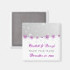 Lila silver grått, vit snöflinga bröllop spara datum-magnet med vågband i silver grått med stjärnor och lila elegant snöflingor. Grått och lila. En perfekt för snyggtens utformning inför vintern, december eller julen i bröllop. Modern och contemporary som ändå passar för ett traditionellt bröllop. Denna elegant, denna klassutformning kan användas för andra särskilda tillfällen, t.ex. förlovningar eller årsdagar.