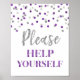 Var god ta själv skylt för baby shower, bridal shower, födelsedagsfest eller bröllop i mörklila och silver konfetti mönster. Observera att glittereffekten är endast en fotografisk effekt.