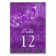 Texten om detta våldsamma lila och silver maskerad boll eller mardi gras bröllop eller bordsnummer med särskilda omständigheter är helt och hållet anpassade. Om du vill ändra bordsnumrets använda kan du anpassa alternativet. För dessa måste du ändra bordsnumret, ändra kvantiteten till 1 och sedan lägga till den i din kundvagn och upprepa den processaa för alla bord-kort som du behöver. Om du vill göra mer omfattande ändringar av kortet, inklusive ändringar av teckensnitt, färg, storlekt teckensnitt eller textplacering, användor du alternativet Anpassa. Detta är ett maskeringskort för elegant bord för ett bröllop eller annat särskilt tillfälle under vilken säsong som helst med ett maskerat eller mardi gras-tema.