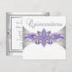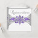Vackra lila och silverfärgade Quinceanera-fest inbjudningar med eleganta lila och silverfärgade juveler på en elegant silver och vit bakgrund. Denna eleganta lila Quinceanera-födelsedagsfirande design kan enkelt anpassas för din fest eller evenemang. Detta är en tryckt design utan riktiga juveler.