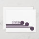 Modern och sofistikerad vykort för dekofärgat Bordsnummer i lila med ett par snyggt konsthandlingar med dekocirklar. Detta vykort för mod bord kommer att ange tonen för en elegant. Enkel att anpassa, lägg helt enkelt till rätt bordsnummer i den text fält tillhandahåller. Klicka på knappen "Anpassa" för att hitta ytterligare anpassningsalternativ.