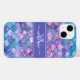 Färgfull Sjöjungfru Mönster Calligraphy Script Monogrammed Phone Case. Unik sjöjungfru och trendig skalar mönster i rosa, lila och blått, med en anpassningsbar monogrammall och en calligraphy-skriptmall för elegant namn. Den här söt sjöjungfrun inspirerade till mobil täckning skulle göra en tankeväckande gåva till en flickas födelsedag.