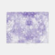 Utformningen har lila och vitt snöflingor på en mjuk, mjuk och vit bakgrund.