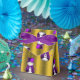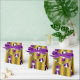 En söt och färglös guld-presentväska med ett mönster av små snögubbar klädda i lila samvet top hat och västar, omgivna av guld stjärnor för att göra din gåva verkligt speciell den här ge.