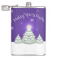 Njut av din favoritdryck med vuxen med den här Lila Snowy Julgran-kolven. Kolvkonstruktionen har en trio dekorerad Julgranar i snö med fallande snöflingor mot lila bakgrund och talesättet "Skapar sprit Bright" som du kan lämna eller anpassa med ditt eget ordspråk. Ytterligare presentartiklar och helgdag som är tillgängliga med den här designen också.