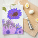 lila solblommor kökshandduk