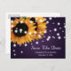 Dessa postkort från lila bröllop spara datum med solblommor och ljus i i lila är idealiska för en bröllopsfest för rustik lila inspirerad av solblommor. Matchande objekt är tillgängliga.