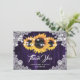 Tacka dina gäster för att de delade din speciella dag med dessa eleganta och romantiska rustika lila och solros bröllop tackkort. Matchande artiklar finns tillgängliga.