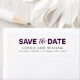 Snyggtens returadressetikett med ord "Spara datumet" i lila med ord "the" i ett trendig slappna av i skriptet. Det är perfekt för när du skickar ut Spara datum-/bröllopsinbjudningar. Anpassa den genom att ersätta platshållartexten. Om du vill ha fler alternativ, t.ex. att ändra teckensnitt, storlek text eller mellanrummet mellan brev, klickar du på knappen "Anpassa". *Observera att Zazzle Watermark som visas i zoomförhandsvisningen INTE visas på den slutliga tryckta produkten © Rosewood and Citrus
