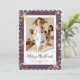Cute lila-fotokort för God jul med snöflingor, stjärnor och fallande snö. Anpassa enkelt det här helgdag för lila med foton och text.