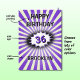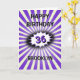 Bakgrunden till det här öga-infångningskortet är en explosion i grönten för lila och blek, med en molnsprängning med lila som innehåller numret. Det finns en återvisning av tecknaden för vintage med ljusa färger text och text. Du kan redigera hälsningen i Grattis på födelsedagen längst fram, redigera numret, ändra namn och även anpassa meddelandet inuti (för närvarande står det bara "Det är bara ett nummer...").
