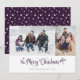 Anpassningsbar lila God jul-fotokort med två foton med en kalligrafititel på framsidan och en lila bakgrund med stjärnor på baksidan. Anpassa enkelt de här lila kalligrafibilderna till julfoto med bilder, en familj namn och året.