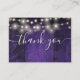 Ett elegant lila strängljus rustik ladugård trä bröllop tack mottagningskort, personifierat med ett speciellt meddelande och brudens och brudgummens namn. Designad av Thisisnotme