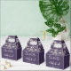 Elegant bröllop-förmånslåda med söt string ljus, chic namnteckning skript namn och speciellt datum på en lila bakgrund. Du kan anpassa dig med ditt eget tack till ditt meddelande på motsatt sida. Ett perfekt sätt att tacka gästerna! Designad av Thisisnotme©