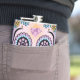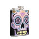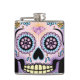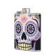 Lila Dia de los Muertos sockerskalle med färgstarka blommor, diamanter och hjärta.