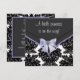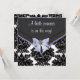 Lila och svart damask babykalas inbjudan med snygg lila rosett och diamant på en vacker svart damask bakgrund. Du kan enkelt anpassa denna eleganta svarta och lila babykalas inbjudan för ditt evenemang genom att helt enkelt lägga till dina uppgifter i den teckensnittsstil, formulering och layout du väljer. Detta är en tryckt design utan riktiga rosetter, diamanter, etc.