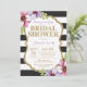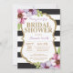 Lila Svart och Guld Bröllopsfest Inbjudan. Vattenfärg lila och rosa blommig blomster. Guld Glitter. Svart och Vita Ränder. För ytterligare anpassning, klicka på "Anpassa den" knappen och använd vårt designverktyg för att ändra denna mall.