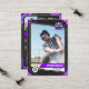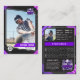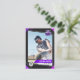 Det här anpassningsbara basebollkortet är perfekt för att fira din favoritspelare. Med sin djärva lila och svarta design och ett utrymme för en spelares foto, statistik och en anpassningsbar bakgrund, kommer det här kortet säkert att imponera på alla basebollfantaster. Perfekt som lagpresent, senior night eller bara ett roligt sätt att visa ditt stöd för din favoritspelare.