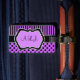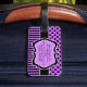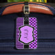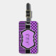 Denna bagagebricka med monogrammerad lila, svart och vitt rand och polka dots och mönster är fullt anpassade och skulle ge vara en chic och en modern märkre som skulle göra det lätt att upptäcka på flygplatsen. Om du behöver hjälp eller vill ha något ändrat skickar du din förfrågan till niteowlstudio@gmail.com.