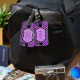 Lila-, svartvitt, vit, randig polkdomapp bagagebricka