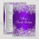 Lila & Silver Vinter Värld Söt 16 Födelsedagsinbjudan. Elegant diamant snöflinga design. Observera: Alla platta bilder, De har inte riktiga juveler!