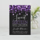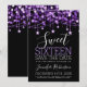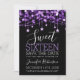 Lila & Black Sweet 16 Birthday Sparkly String Ljus "Save the Date"-meddelandemall med uppgifter om party adress och OSA.