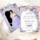 Anpassa denna snygga Quinceañera / Sweet 16 födelsedagsfoto "save the date" med dina uppgifter enkelt och snabbt, tryck bara på knappen "anpassa" för att ytterligare ändra och formatera stil och placering av texten. Detta vackra "save the date"-kort har vackra akvarell-lila, syren, lavendelblommor och silverfärgade accenter. All text kan redigeras! Perfekt för Quinceañera, Sweet 16, 18-årsdag, brud shower, trädgårdsfest, andra ålders firande, dop och mycket mer! Matchande produkter finns i vår butik! (c) The Happy Cat Studio.