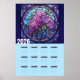 En lila syrenerblomma avbildad i en glasmålning design gör denna väggkalender till en vacker kalender för 2026.