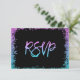 Moderna lila och turkos falska glitter RSVP-kort. Perfekta för ett bröllop, Bat Mitzvah eller Sweet 16-fest. Designen är platta tryckta illustrationer/grafik - INTE ÄKTAT GLITTER.