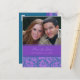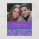Fotokort spara datum meddelande i bröllop anpassningsbar i lila av elegant mörk och turkosa snurrar mönster, snyggt och anpassade med dina bröllop-detaljer och ditt eget foto. Finns även i många andra produkter för bröllopsfesten.