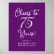 Elegant Lila Cheers till 75 år 75:e Birthday Poster Visning den här Eleganten Välkomstmeddelande för hösten Lila Poster vid ingången till den speciella milstolpen födelsedagsfest. Texten är helt och hållet anpassade så att du kan anpassa perfektens meddelande till dina gäster. Köp vår affär för mer planering och dekoration av party!