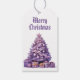 En lila Julgran omgavs av inslagna presenter med ett typsnitt av traditionellen med God jul på en naturlig tonad papper presentmärkre. Baksidan är att du kan skriva texten och till: och från: om du vill. Den här märkrn kommer att ge era presenter den lilla extra med ett nostalgiskt och vintage utseende. Njut av inslagning, traditioner och glädje över ge. Du kan välja mellan två olika pappra typer (matt white eller craft natural) och fyra olika garntyper färg.