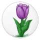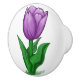 Lila tulp med stjälk och grönt löv i grönt gräs. Välkommen Vår. Klar vit bakgrund. Originalteckning © TamiraZDesigns.