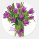 Vackra lila tulpaner i ett genomskinligt glas vas ... anpassade med din text. Perfekt för alla tillfällen.