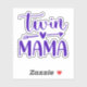 En liten och roligt mamma-dekal. Det är lila och har ett hjärta mellan ord twin och mamma.