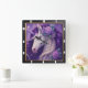 Lila Unicorn Blommigt Fantasy Fyrkantig Klocka