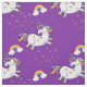 En mycket söt och söt enmajsväv med ett mönster av knubbig små vita unicorns med regnbåge svan, maner och horn och guldhovar. De hoppar över regnbågar, moln och guld-stjärnor på en slående lila bakgrund. Perfekt för barnkläder, hemdekorartiklar som hemmabruk och andra hantverksprojekt för enhörning.