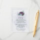Vackert romantiskt bröllopsmottagningskort med dammig blått och lila blommor och lite grönt löv. OM DU VILL HA MER MATCHING PRODUCTS klickar du på samlingen ovan eller kontaktar mig