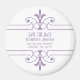 Enkel och elegant Finare Spara datum magneter för prydnadsdjur i lila och vitt med en sofistikerad konst deka stil för prydnadsblommande gräns. Enkel att anpassa, lägg bara till din bröllop-information i den text fält tillhandahåller. Klicka på Anpassa om du vill söka efter fler anpassningsalternativ.