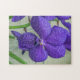 Ett nära foto av vackra lila vanda orchids tryckt på ett pussel.