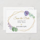 Lila vattenfärg botaniskt spara datumet vykort